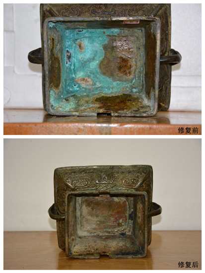 本次青铜器文物修复结合第一次全国可移动文物普查经验成果,严格执行修复的数字化和档案化,将修复信息纳入文物基本信息,建立健全了修复文物的长效监测机制。通过本次修复工作,中心文物修复人员全面掌握了青铜器修复的技术规范和工作要领,为今后广泛开展馆藏青铜类文物修复积累了宝贵经验。