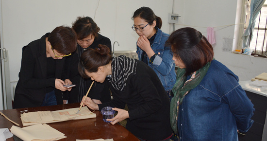 为支持孔府文献的保护利用工作,国家古籍保护中心向曲阜市文物局文物修复中心提供了两台纸浆补书机。日前,文物修复中心邀请山东省古籍保护中心修复专家杨林玫、张丽丽,对纸浆补书机的操作使用和纸质文物的修复技术进行指导。