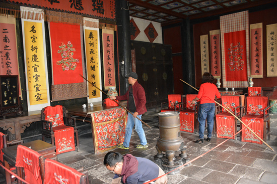 日前,我局对孔府前堂楼、后堂楼展室的10幅字画作品进行了更换,这是孔府展带第一批更新的字画作品。孔府作为衍圣公的衙署和宅邸,真实呈现了孔子嫡系后裔的生活场景,承载着丰富的历史文化信息。字画作为孔府展览的重要组成部分,在景区观览中占据着重要地位。1995年,为妥善保存孔府旧藏文物,原孔府展示的字画类文物均归入孔府文物档案馆保存,同时为保证参观效果对部分字画进行了临摹复仿。如今,这批复仿作品已逾20年,受环境影响出现了破损、起翘、污渍、脆化等情况,严重影响了展示效果,急需更新。