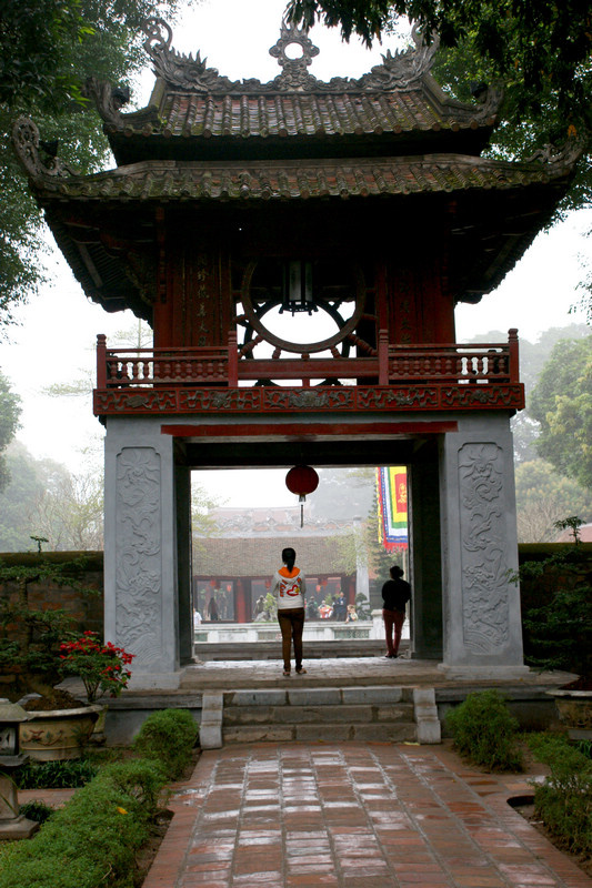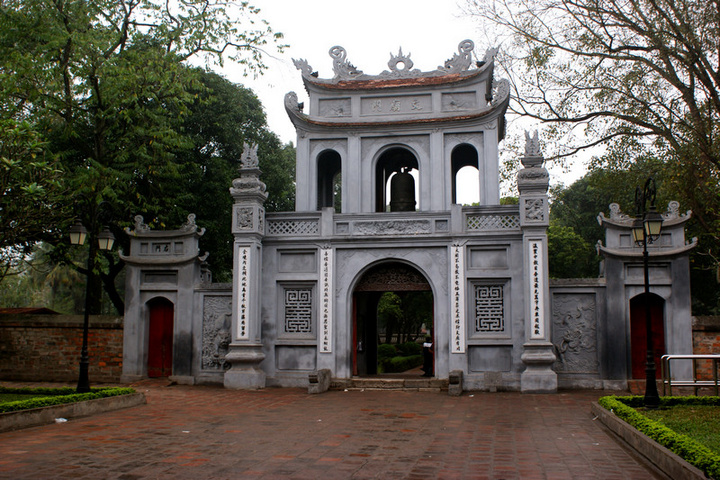 越南河内文庙是一座典型的中国式建筑群,位于河内还剑湖西侧,是越南黎王朝的祭孔庙宇和国子监。越南黎朝的开国君主以孔孟之道治国,1010年下诏书把安南国都从花芦迁到升龙(河内),于城内建庙祀孔子,教化臣民。1070年文庙建成。《大越史记全书》记载:“庚戌年,李朝圣宗皇帝神武二年(1070年)八月秋建文庙,立孔子,周公及四配塑像,画七十二贤肖像,四季供祭,并让皇太子前来学习。”文庙建成5年后,又于1076年在文庙旁建成国子监,后人扩建改名为国学院。此为越南第一所国立大学。