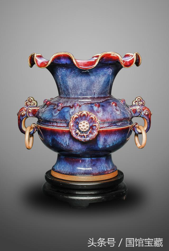 钧瓷《太平有象》作为国家盛事的国礼重器,不仅典雅高贵,尊崇华美,其还蕴含着中华民族千年传承的文化内涵与审美追求:其造型《太平有象》源自禹帝时期白象耕土,以为瑞兆,从此以象作歌颂升平沿袭成俗。装作品饰的莲花、莲子装饰,源自北魏的莲花瓦当,不仅是中国古代艺术的精华,还有着佛教的圣洁、文人的清雅等独特内涵。纹饰与口沿荷叶造型互为呼应,有着和和美美,四海一家的寓意。
