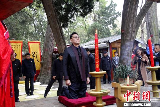 孔子后裔按祭祀程序先后祭拜先祖孔子、二世祖孔鲤、三世祖孔伋和远代先祖、中兴祖孔仁玉,向先祖上香、献花、行礼,以表哀思。