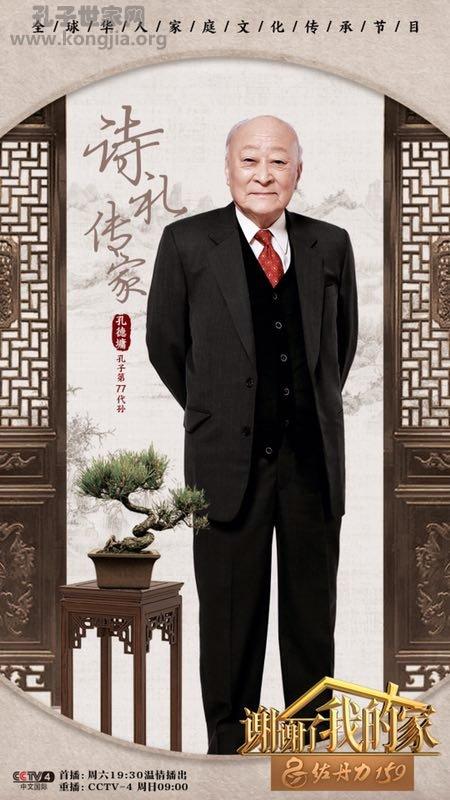 2月10日(本周六)19:30,世界孔子后裔联谊总会会长、孔子第77代孙孔德墉做客中文国际频道(CCTV-4)全球华人家庭文化传承节目《谢谢了我的家》,为您讲述孔氏家族“诗礼传家”的家风典范。