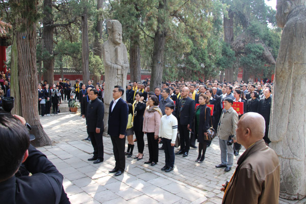 2017年4月3日上午,丁酉清明孔子后裔释奠仪式在曲阜孔林隆重举行。来自台湾的至圣79代嫡长孙、中华大成至圣先师孔子协会会长、至圣孔子基金会会长、孔子世家谱常态化续修工作协会会长、世界孔子后裔联谊总会荣誉会长、中国孔庙保护协会名誉会长孔垂长一行及世界孔子后裔联谊总会代表、曲阜孔子后裔代表,以及来自北京、天津、山东、山西、河北、河南、江苏、安徽、湖北、广东、广西、贵州、甘肃、新疆、台湾等地的孔子后裔400余人,齐聚祖茔孔林,共同祭奠先祖。