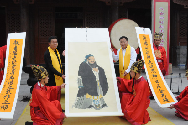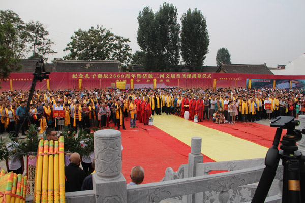 河南省孔子后裔联谊会及郑州、济源、南阳、开封、洛阳、平顶山、新乡、焦作、濮阳、许昌、周口、信阳、驻马店、三门峡等十四个地市孔子后裔联谊会代表,济源市孔氏后裔族人、济源市孟氏宗亲联谊会、济源市颜氏后裔、济源市姓氏文化研究会等数千人,济源市相关局委办代表参加活动。济源孔子联谊会副会长孔东征主持祭孔大典暨圣像揭幕仪式。