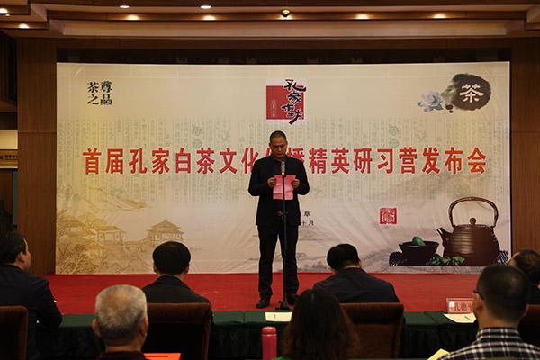 2017年10月22日-25日,首届孔家白茶文化传播精英研习营在曲阜开幕。本次活动由福建省福鼎市孔家茶业有限公司组织发起,来自全国各地的孔家白茶文化传播精英以及中华孔子学会孔子后裔儒学促进会、曲阜孔子后裔联谊会部分代表等共100余人参会。曲阜市政协主席、世界孔子后裔联谊总会副会长、中华孔子学会孔子后裔儒学促进会副会长、曲阜孔子后裔联谊会会长孔令玉,曲阜市人民政府副市长杨晓东,曲阜市文物局局长、中华孔子学会孔子后裔儒学促进会副会长、中国孔庙保护协会会长、曲阜孔子后裔联谊会常务副会长兼秘书长孔德平、曲阜市政府办公室副主任、投资促进局局长郭海涛,益宝国际集团董事长、孔子世家谱常态化续修工作协会副会长、中华孔子学会孔子后裔儒学促进会常务理事孔庆保,福鼎市孔家茶业有限公司董事长、中华孔子学会孔子后裔儒学促进会理事孔庆德等出席了结业典礼。