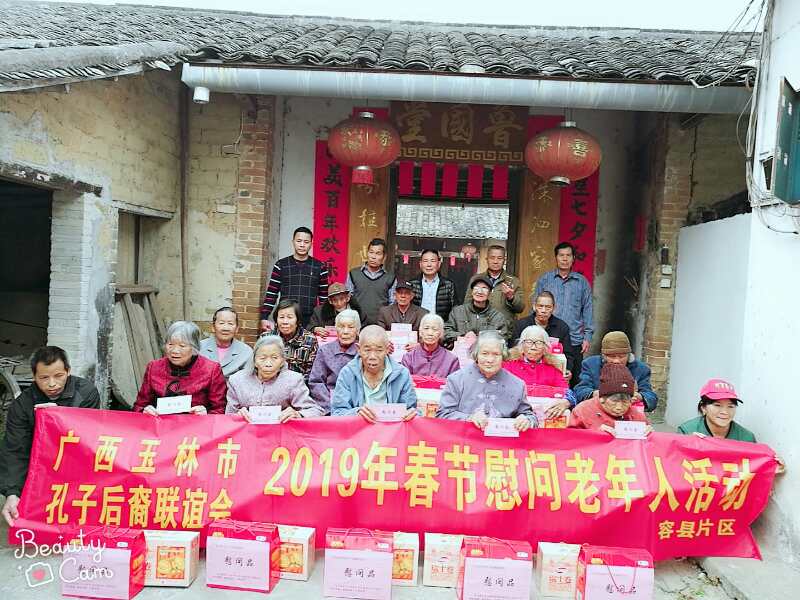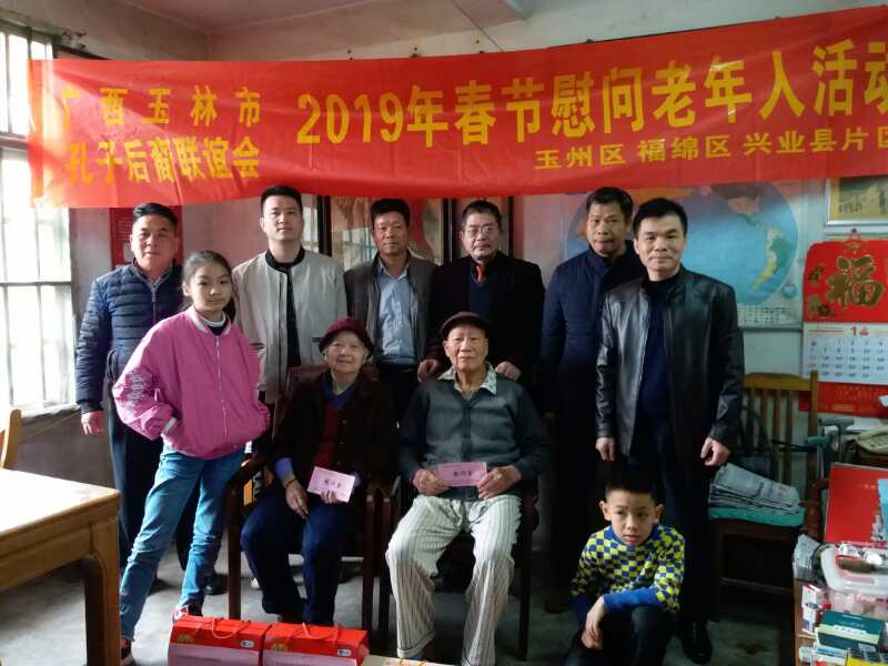 敬老爱幼是中华民族的传统美德,是孔氏家族的优良家风,为倡导孝敬老人、关爱老人的良好风尚,2019年春节前夕,广西玉林市孔子后裔联谊会开展了以“心系家族,关爱老人”为主题的春节慰问老年人活动。