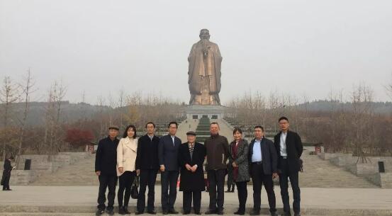 27日上午,德墉会长一行在孔令玉主席,政协副秘书长、办公室主任孔德民,灵山集团党委书记华晓宁,灵山集团副总经理、曲阜尼山文化旅游投资发展有限公司总经理张敏娜的陪同下到孔子出生地尼山圣境考察。尼山是孔子诞生地、明礼修贤处,是世界级文化圣地。尼山圣境的核心标志为孔子像和大学堂:孔子像雕塑高72米,由著名雕塑家吴显林先生主持设计,以唐代画家吴道子《先师孔子行教图》为参考;大学堂依山而建,整体呈退台式形制,共9层,总高65米,建筑外观大气磅礴,建筑风格“拙朴、自然”,力求开创儒家思想智慧与现代建筑艺术完美结合的新东方古典风格。