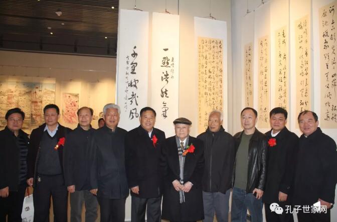 中华孔子学会孔子后裔儒学促进委员会顾问、原二炮后勤部政委孔繁顺将军赠送画展手书的“书存金石画舍沧桑”书法作品。中华孔子学会孔子后裔儒学促进委员会常务理事、民革中央委员、山东画院院长、山东省美术家协会常务副主席孔维克出席开幕式并致辞,中华孔子学会孔子后裔儒学促进委员会顾问、国家功勋教练员、乒坛名将孔令辉之父孔祥智,以及来自各地的儒促会成员、孔子后裔代表出席画展开幕式。
