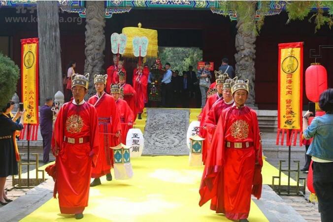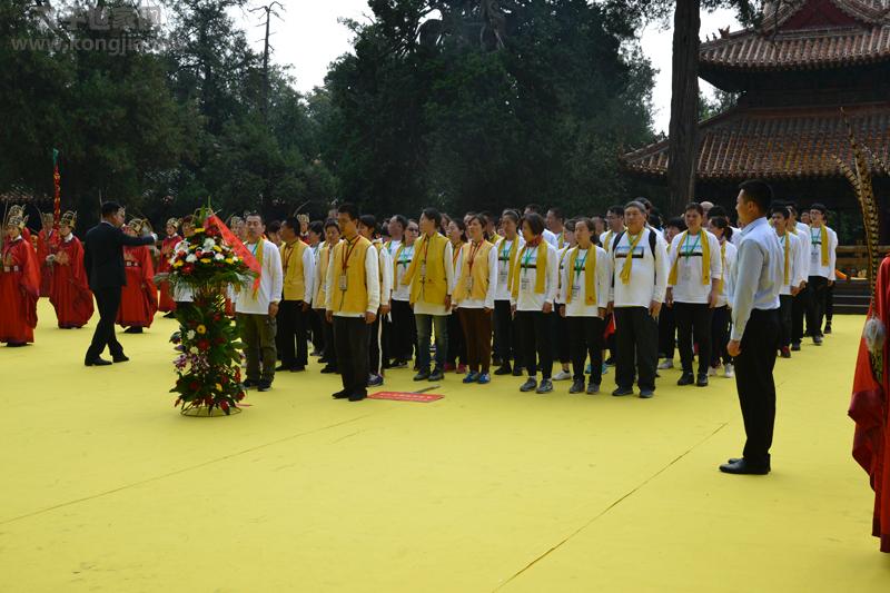 随后,曲阜孔子后裔代表,先贤先儒后裔代表,各地孔子后裔等分组向先祖先师行一跪三叩头礼,各地师生代表向先师敬献花篮并行三鞠躬礼。孔子后裔纪念先祖诞辰2569年家祭大典圆满礼成。