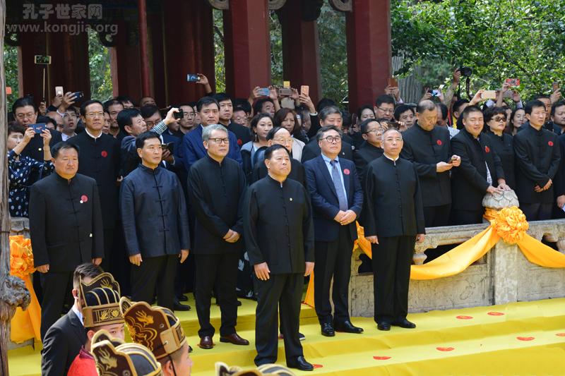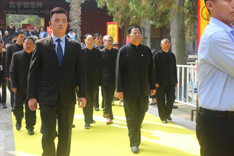 曲阜市文物局局长、孔子博物馆馆长孔德平主持家祭仪式。在佾舞告祭声中,主祭官中华孔子学会孔子后裔儒学促进委员会副会长、曲阜市政协主席孔令玉,陪祭官韩国孔氏宗亲会会长孔炳武,中华孔子学会孔子后裔儒学促进委员会副会长、安徽孔子后裔联谊会会长孔祥云,中华孔子学会孔子后裔儒学促进委员会副会长、河南孔子后裔联谊会会长、河南省政协常委、中国孔家钧窑集团公司董事长孔红生,曲阜市人大常委会副主任孔繁春,曲阜市文物局局长、孔子博物馆馆长孔德平,中华孔子学会孔子后裔儒学促进委员会常务理事、广东孔子后裔联谊会会长、广东孔子儒学文化促进会会长、广州天星学校董事长孔耀昌,代表所有孔子后裔盥洗、上香、献爵、献帛,行三献礼。