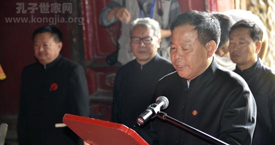 惟公元2018年岁在戊戌八月十九日,兹以公历值吾圣祖诞辰大吉之日,阙里世家宗亲代表序昭穆[1]、别长幼、尊尊亲,沐浴更衣,谨以牲牢香帛粢盛[2]素品,敬陈明荐[3],祭告于圣祖及列祖列宗。曰: