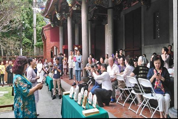 为表达对孔子的崇敬与赞颂之意,2018年9月23日,中华大成至圣先师孔子协会在台北市孔庙举办了“儒茶阐道”与“雅乐赏析”文艺活动。大成至圣先师奉祀官孔垂长先生到会致辞。中华孔子后裔儒学促进会暨台湾孔子后裔联谊会理事长孔繁晋、副理事长孔繁麟、孔娣芝及多位孔氏后裔参与了本活动。