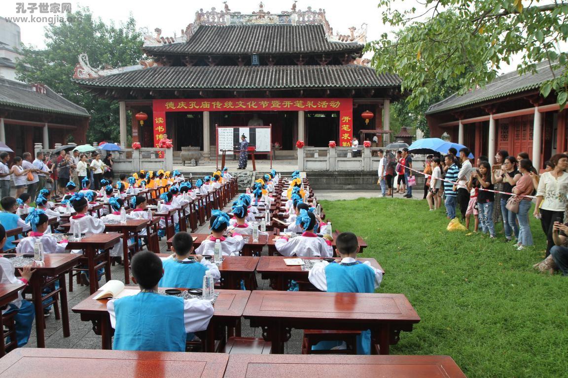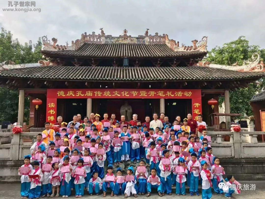 8月18日,广东省孔子后裔联谊会、广东省孔子儒学文化促进会组织孔子后裔学童相聚岭南最古老的德庆孔庙(学宫),参加古典而又庄重的开笔礼活动。活动由会长孔耀昌(繁)先生亲自带领,副会长兼秘书长孔伟光(繁)组织了来自省内各房72名孔氏学童代表参加。