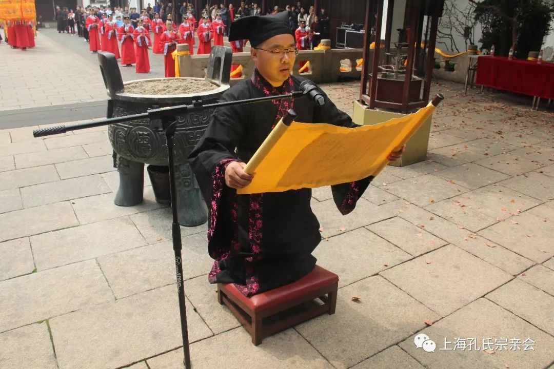 3月30日上午,清风日朗、春意融融。2019己亥年上海清明祭奠孔子释典礼(祭孔大典)在上海文庙隆重举行。本次大典由中华孔子学会孔子后裔儒学促进委员会、世界孔子后裔联谊总会、上海孔氏宗亲会、上海炎黄文化研究会、上海炎黄文化研究会孔子文化专业委员会、上海文庙、孔子荟文化传播有限公司等单位和组织共同举办。有来自上海、江苏、安徽、福建、浙江等地的孔氏宗亲代表以及各界尊儒爱孔的上海市民约200多人参加了本次大典。