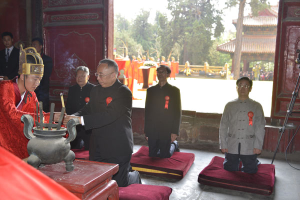 祭典以传统三献礼为主要形式,由曲阜市文化和旅游局副局长,市文物管理委员会主任孔德民主持。世界孔子后裔联谊总会会长、中华孔子学会孔子后裔儒学促进委员会会长、孔子世家谱常态化续修工作协会荣誉会长兼执行会长孔德墉,中华孔子学会孔子后裔儒学促进委员会副会长、曲阜市政协主席孔令玉,中华孔子学会孔子后裔儒学促进委员会副会长、上海百金化工集团有限公司董事长孔庆然,韩国孔氏宗亲会会长孔炳武,中华孔子学会孔子后裔儒学促进委员会理事、曲阜市人大常委会副主任孔凡春,中华孔子学会孔子后裔儒学促进委员会理事、曲阜市委党校常务副校长孔庆国,孔子博物馆原馆长孔德平,曲阜市文化和旅游局副局长,市文物管理委员会主任孔德民,中华孔子学会孔子后裔儒学促进委员会常务理事、广东孔子后裔联谊会会长、广东孔子儒学文化促进会会长、广州天星学校董事长孔耀昌,中联部研究室副主任孔根红,分别担任主祭官和陪祭官代表全体孔子后裔至孔庙大成殿内分别向先祖孔子,以及四配、十二哲等上香、献爵、献帛,以中华传统叩拜礼来表达对先祖的追思和缅怀。