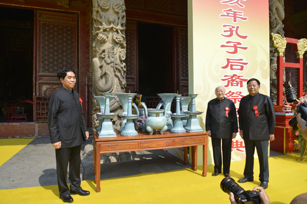 祭祀大典期间举行了中国工艺美术大师、国家级非物质文化遗产项目钧瓷烧制技艺代表性传承人孔相卿先生制作的钧瓷五供和中国工艺美术大师、中国陶瓷艺术大师葛军先生制作的紫砂木鱼石合壁樽《至尊清供》捐赠曲阜孔庙仪式,孔德墉、孔令玉分别代表接受捐赠。