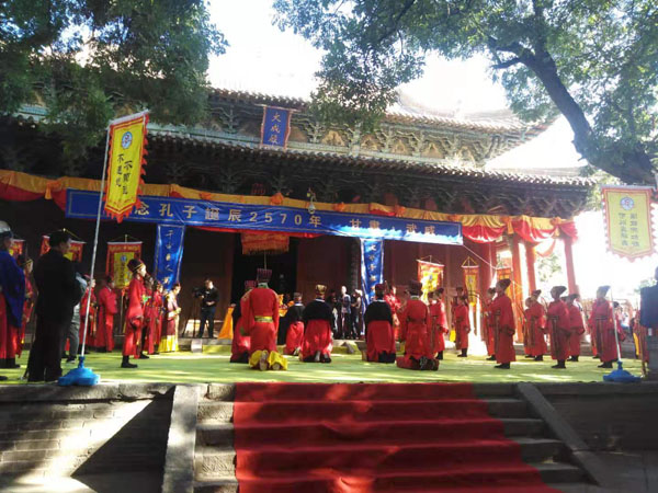 2019年9月28日,己亥年纪念孔子诞辰2570年孔子后裔祭孔大典在曲阜孔庙顺利举行。来自北京、天津、江苏、山东、河南、湖北、广东、广西、辽宁、黑龙江、四川、云南、贵州、台湾、韩国、瑞士、印度尼西亚等地的孔子后裔代表,颜子、曾子、孟子、卜子、公冶、步叔后裔代表以及来自曲阜市教育界的优秀教师代表、曲阜中医药学校、山东儒源文化集团和孔子学苑师生代表、曲阜市儒家商会代表、韩国华城阙里祠共800多人参加了本次祭孔活动。