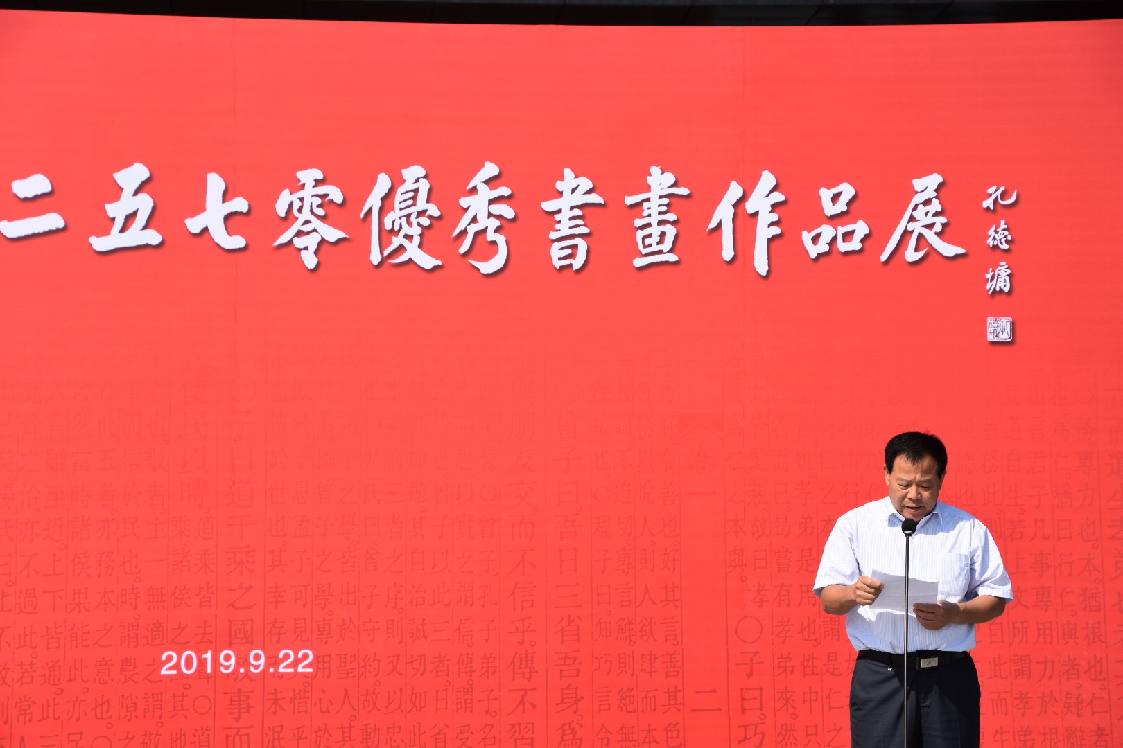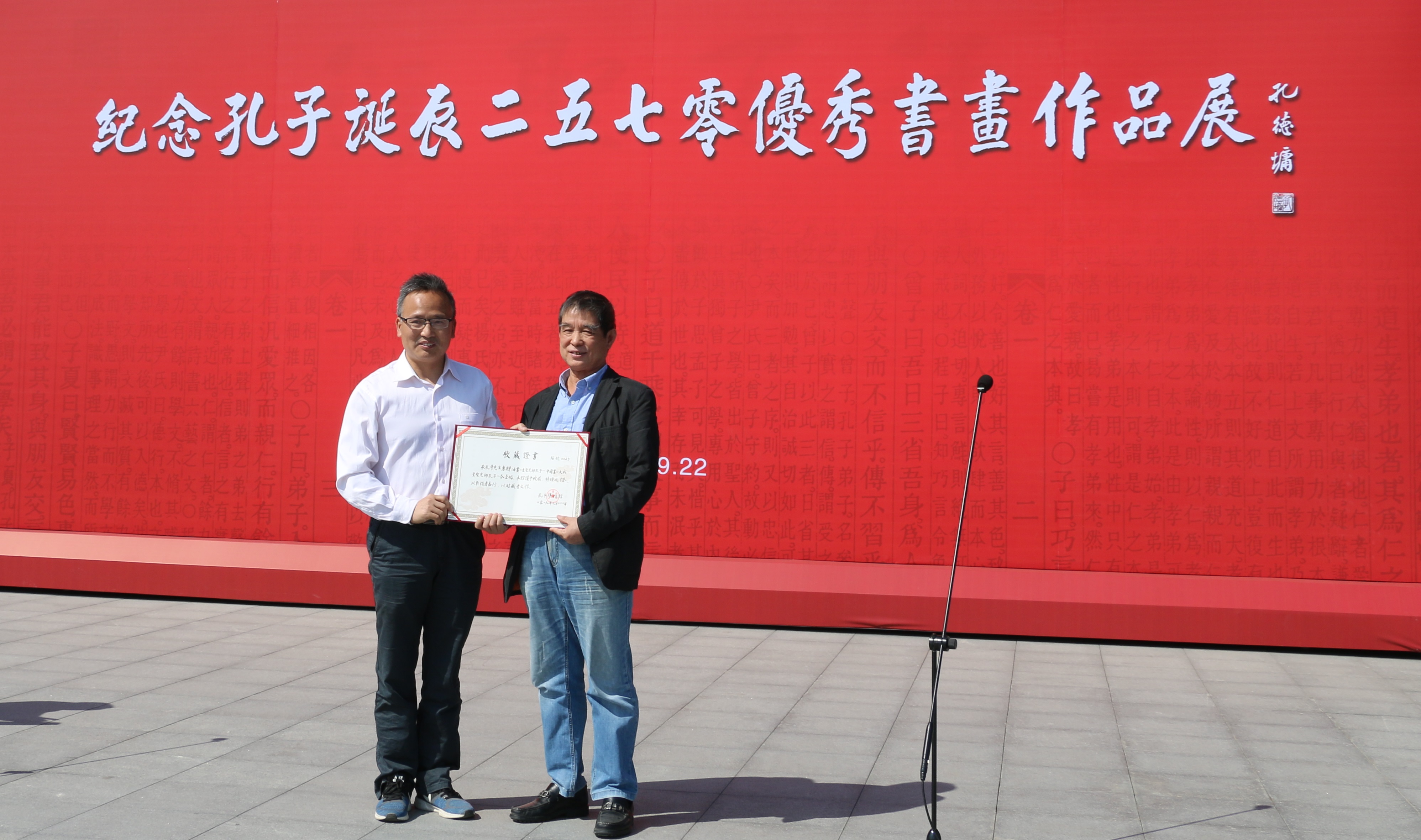 据悉,本次邀展作品和征集入展作品将在孔子博物馆和尼山圣境分别展出,部分优秀作品还将赴韩国、台湾巡回展出。展出结束后,除作品捐赠孔子博物馆收藏的作品外,全部作品退给作者。