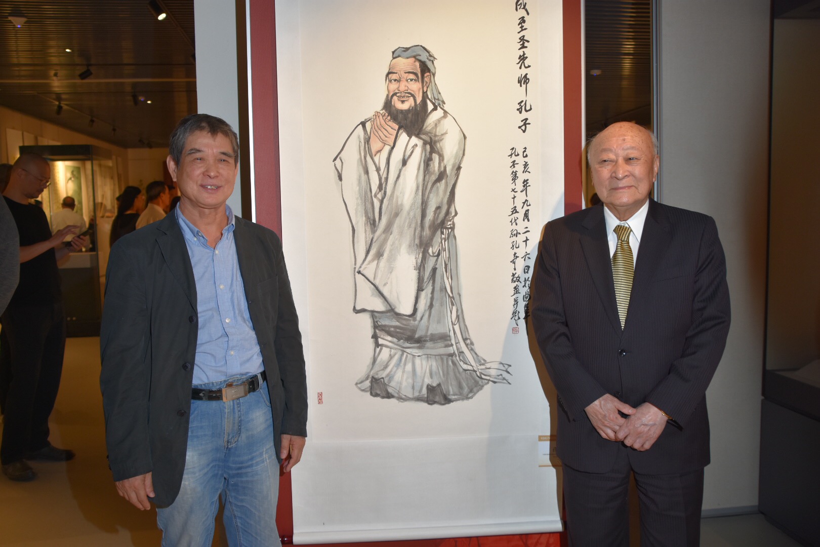 本次书画展上,儒促会与孔子后裔的作品备受关注,孔德墉会长为书画展题写展名,世界孔子后裔联谊会名誉会长孔垂长敬书“博学于文,约之以礼”;儒促会常务理事、当代中国画坛巨匠孔奇、孔维克的创作的孔子画像吸引众多观展者驻足;儒促会顾问孔繁顺、孔见两位将军的书法作品分别敬录《孔子家语》与《论语》表达对至圣先师的敬仰之情;儒促会副秘书长孔祥胜,儒促会理事、中国艺术研究院青年画家孔德平,儒促会理事、中国美术学院教授孔耘、孔令伟、孔国桥,儒促会理事、山东艺术学院教授孔繁忠的作品以及数十位孔子后裔的作品均表现出来很高的艺术水平。