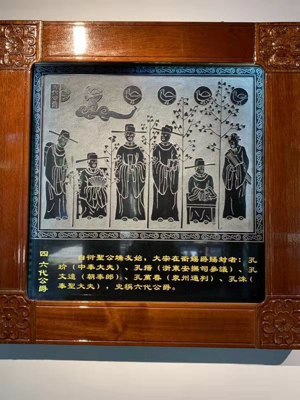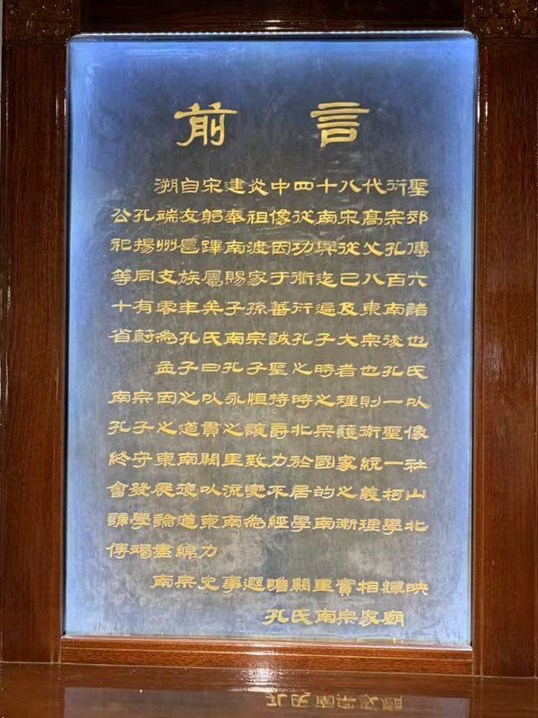 在展示孔氏南宗历史沿革的长廊里,大家驻足良久。孔众副会长不时询问,详细了解孔氏南宗的渊源和传承发展的历史。据史料记载,北宋末年,金兵南侵,宋高宗赵构仓促南渡,建都于临安,孔子第48代裔孙孔端友,负着孔子和孔子夫人的楷木像,离开山东曲阜,南迁至此,后敕建孔氏家庙。