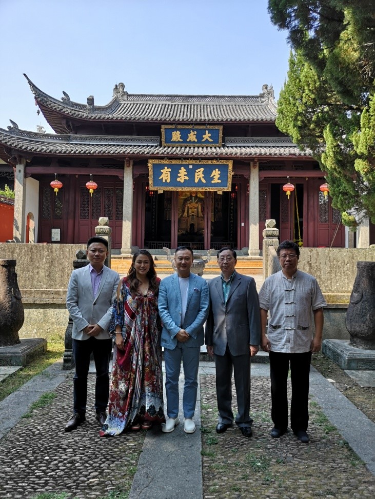 孔众副会长一行于当日抵达衢州孔氏南宗家庙,首先在家庙工作人员严小平先生陪同下,参观了孔庙和孔府。孔氏南宗家庙既是官庙,亦是家庙,是南迁衍圣公祭祀先祖孔子的地方,比拟曲阜而建,威严庄重,占地面积14000平方米,建筑面积7490平方米,距今约有760多年的历史。