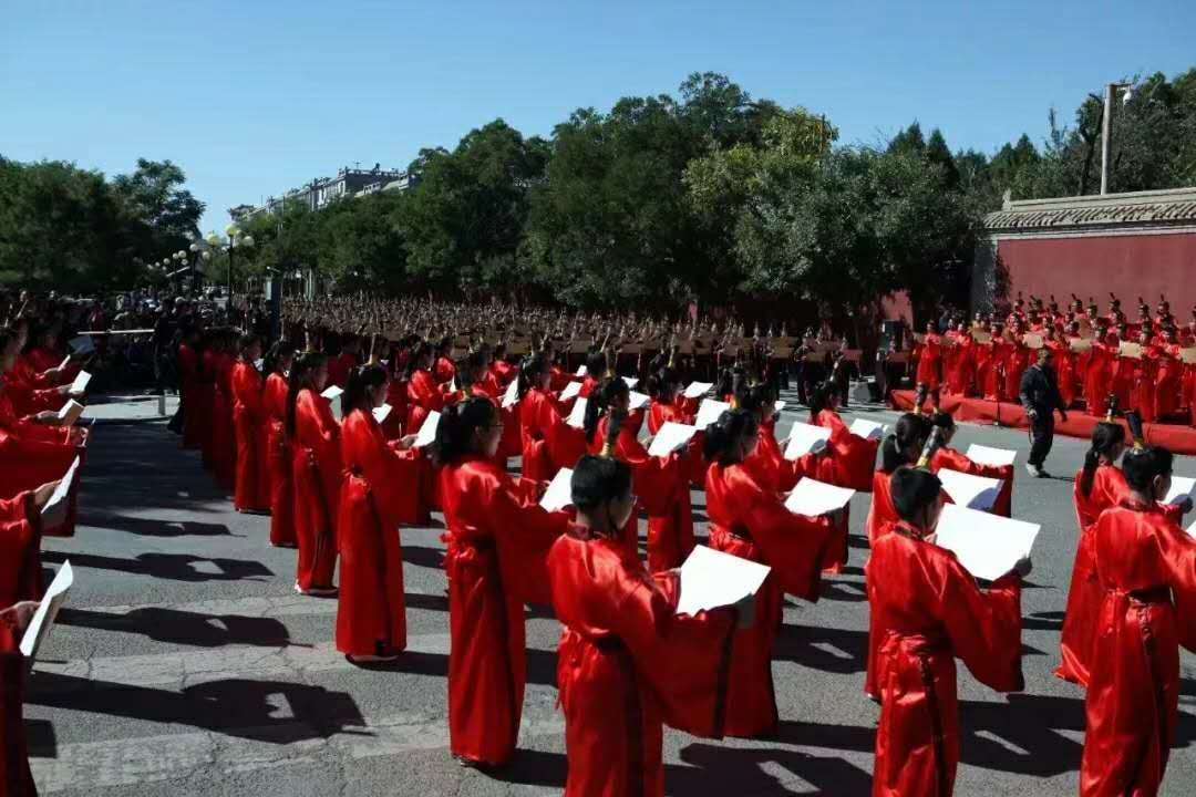 一千名中学生着汉服在万仞宫墙外集体吟诵《大学》、《中庸》