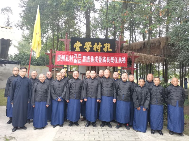 崇州道明镇协和社区121户、246名孔氏族人,为明末清初从山东曲阜迁入崇州的孔子后裔,故名“孔村”。近年来崇州孔村在各级政府、社会团体、儒学爱好者的全力支持下,全体村民共同牢记和践行习主席“中华民族在几千年历史中创造和延续的中华优秀传统文化,是中华民族的根和魂”的指示。