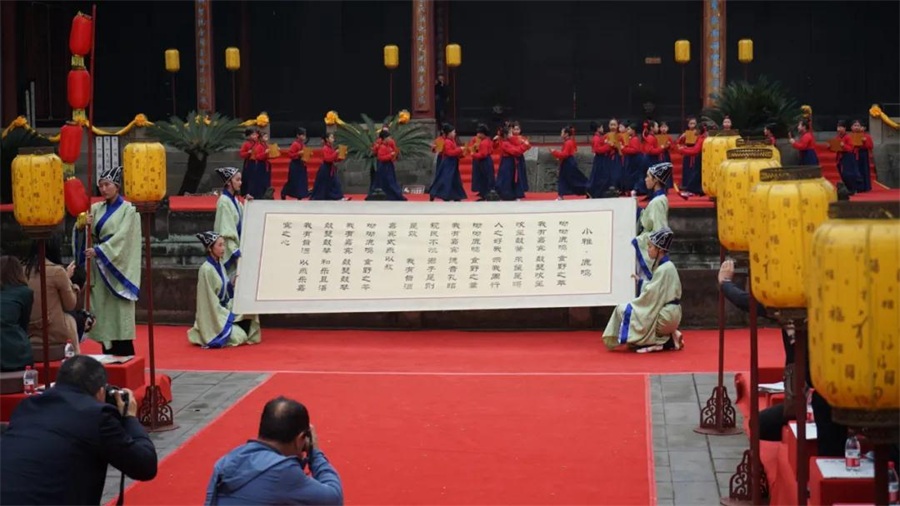 3月26日,中国孔庙保护大会暨中国孔庙保护协会第23次年会考察《儒在犍为·大成礼赞》文艺演出在犍为文庙举行。