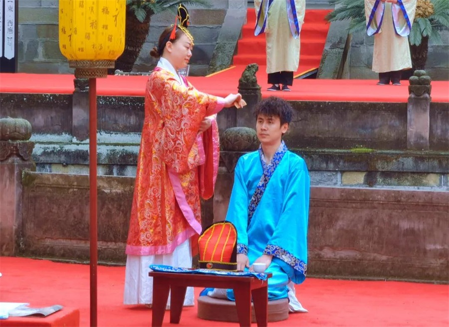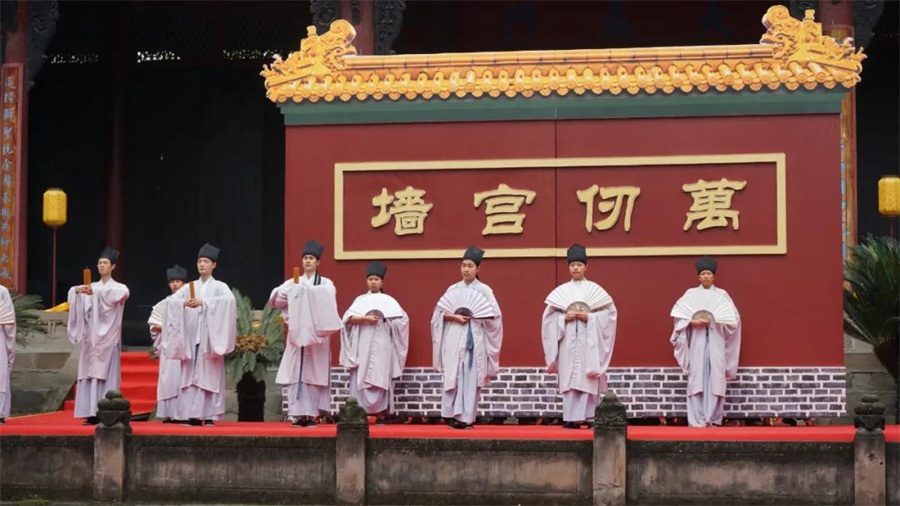 据悉,《儒在犍为·大成礼赞》为全国首部儒家文化主题文旅演出剧目。该剧以儒家文化传承为主题,分为“礼、乐、舞、赞”四个篇章,通过汉式成人礼、经典诵读、礼仪舞蹈、祭孔大典等表现形式,弘扬中华优秀传统文化,彰显名邦精神气度,传承儒家人文品格,具有浓郁地方特色并可常态化演出的特色文化旅游实景剧目。