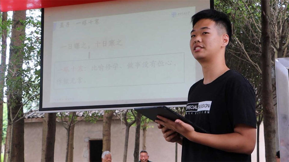 孔祥彬老师表示:习近平总书记指出,包括儒家思想在内的中国优秀传统文化中蕴藏着解决当代人类面临的难题的重要启示。这次来到具有鲜明儒家特色的崇州孔村,就是要引领大学生在感受儒家传统文化和乡村振兴的过程中更加坚定“四个自信”特别是文化自信,同时为孔村的乡村振兴提供积极帮助,以实际行动庆祝中国共产党成立100周年。