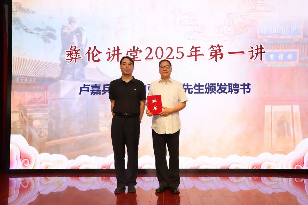 孔庙和国子监博物馆馆长卢嘉兵主持讲座,向张学智教授颁发彝伦讲堂主讲教师聘书。