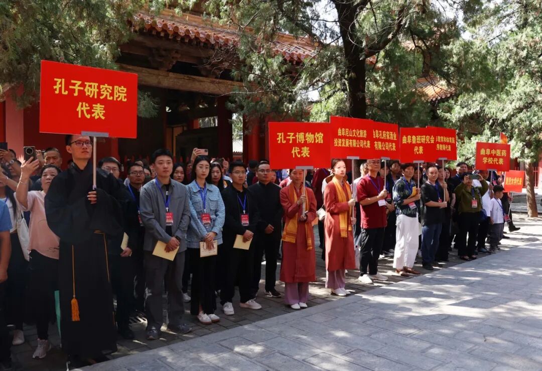 孔子研究院、孔子博物馆、曲阜尼山文化旅游投资发展有限公司、曲阜市教育和体育局优秀教师、曲阜中医药学校、复旦大学、曲阜市希晓古今教育博物馆、曲阜孔府家酒业有限公司、曲阜市文物局、曲阜市三孔文化旅游服务有限责任公司、曲阜鲁班研究会等单位代表分组向先师敬献花篮,行三鞠躬礼。