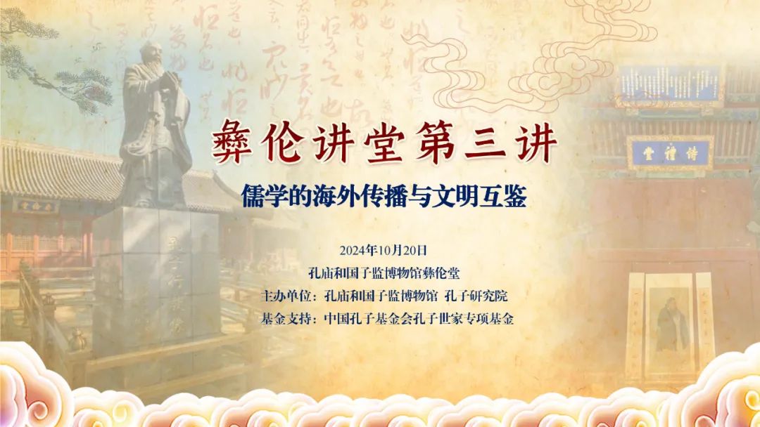10月20日,由孔子研究院、孔庙和国子监博物馆联合主办,中国孔子基金会孔子世家专项基金支持的彝伦讲堂第三讲在孔庙和国子监博物馆彝伦堂举行。此次活动以“儒学的海外传播与文明互鉴”为题,首次以会讲形式展开。
