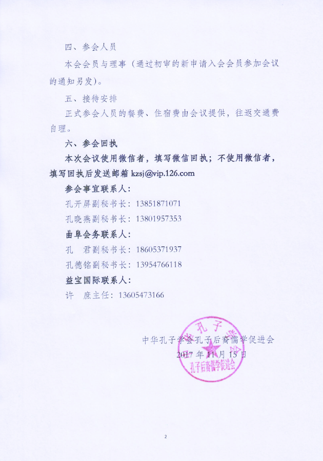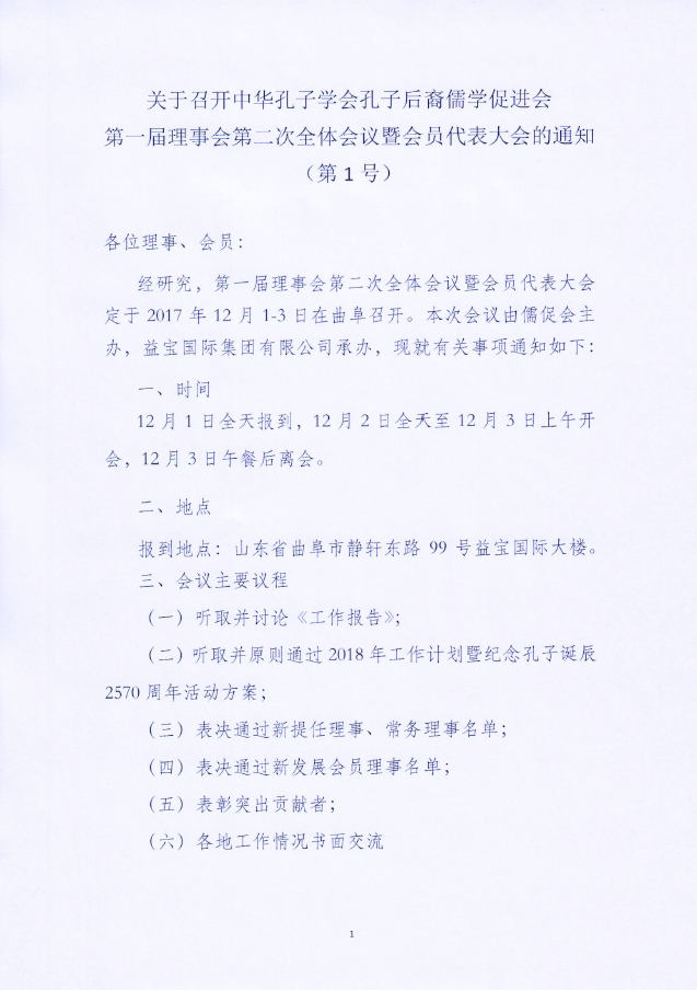 关于召开中华孔子学会孔子后裔儒学促进会第一届理事会第二次全体会议暨会员代表大会的通知