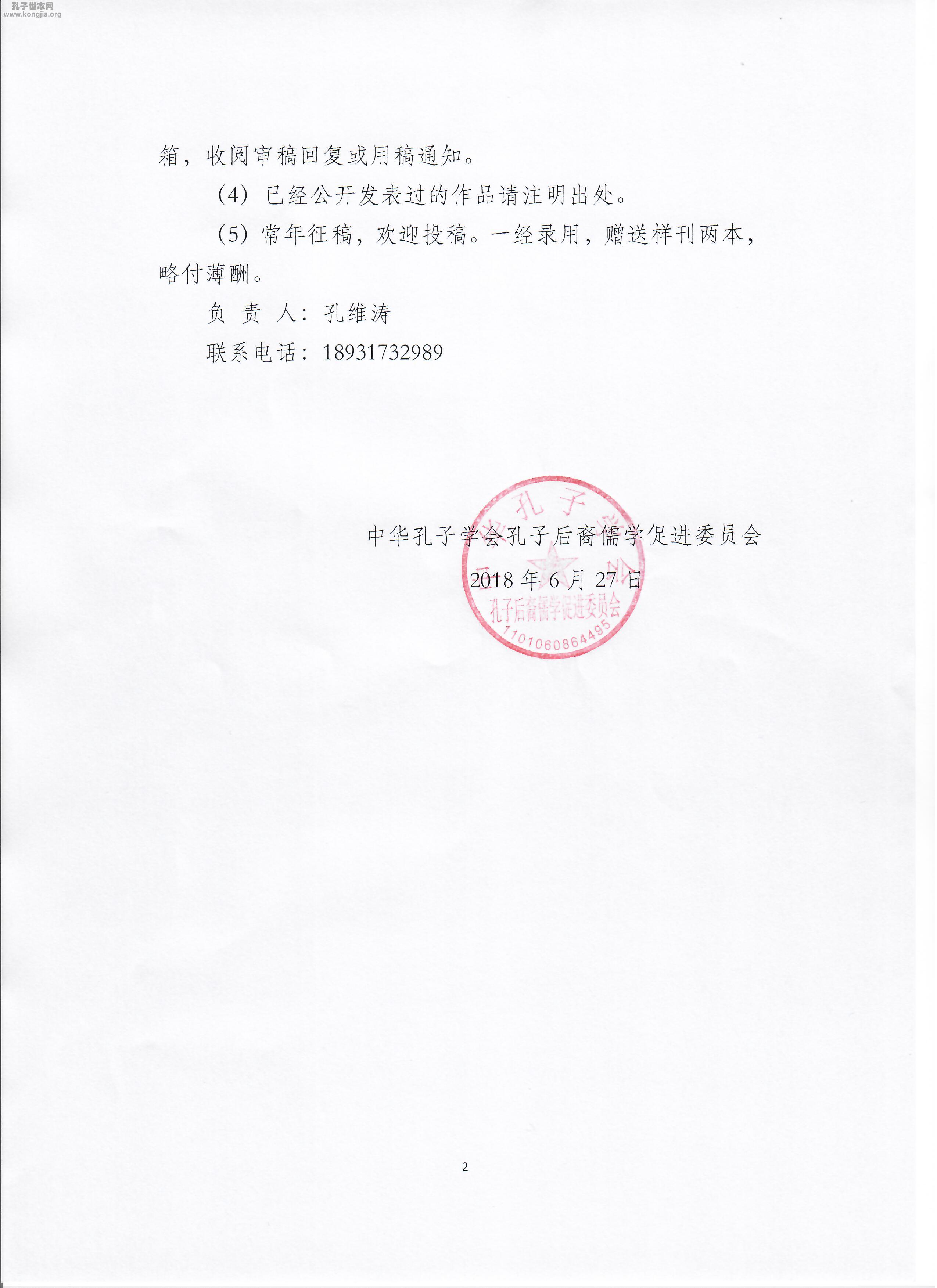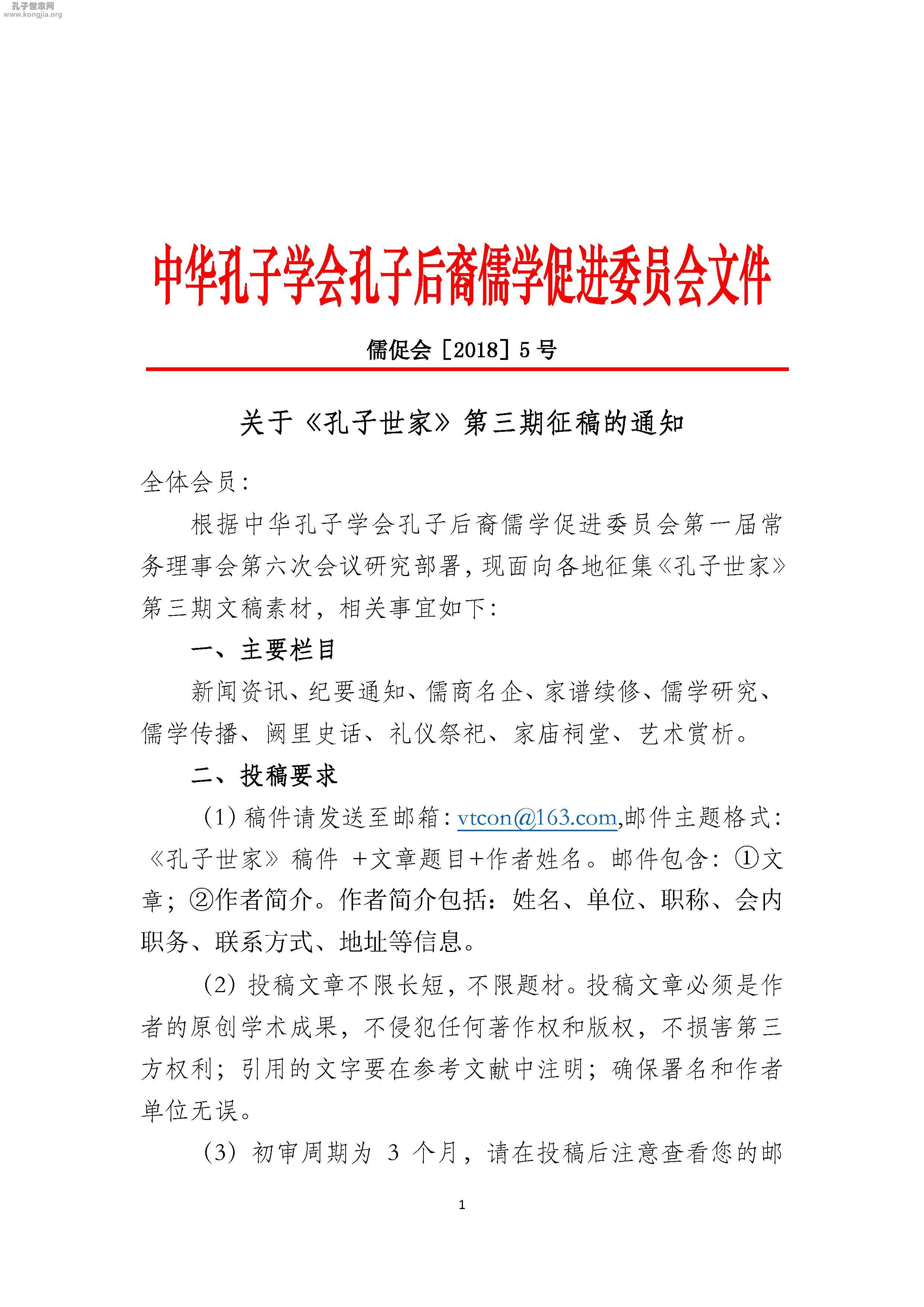 关于《孔子世家》第三期征稿的通知
