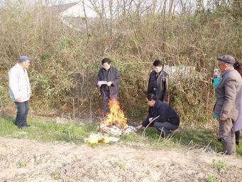 二○○六年三月十三日(农历丙戌年二月十五日),风和日丽,春光明媚,衢州派五支祖居地句容青城埠村族人们在村口热烈欢迎回来认祖归宗的令才等江宁族人。衢州派五支始祖四十八代端隐公建康年间随父兄扈驾南渡。绍兴年间端隐公进士及第,仗剑从戎,入宗泽元帅麾下征战,后任江宁府观察推官,卒葬句容。子孙依墓为家并播迁江南各地。该支族人东鲁家风不坠,文官武将英才辈出。南宋撰公(解元),元明公(运干);明朝贞运公(宰相),荣宗(布政使);民国令恂(中将),共和国从州(中将)是该支族人的骄傲。令才宗亲五十五代祖克让公自句容迁居江宁方山,近日经多方考证确认自己的世系,无比激动,立即决定偕兄姐回籍省亲祭祖。令才宗亲向保管谱牒的两位宗长赠送了礼金和礼品。随后在村中长老的带领下,令才宗亲一行来到家族墓地(瓜窝地之原)祭祀先祖端隐公。端隐公陵墓失祭数十载。原墓为六十三代贞运公所修,庄严恢弘,但现在所有建筑陈设已荡然无存。参祭相约尽快征地重修先祖陵园。