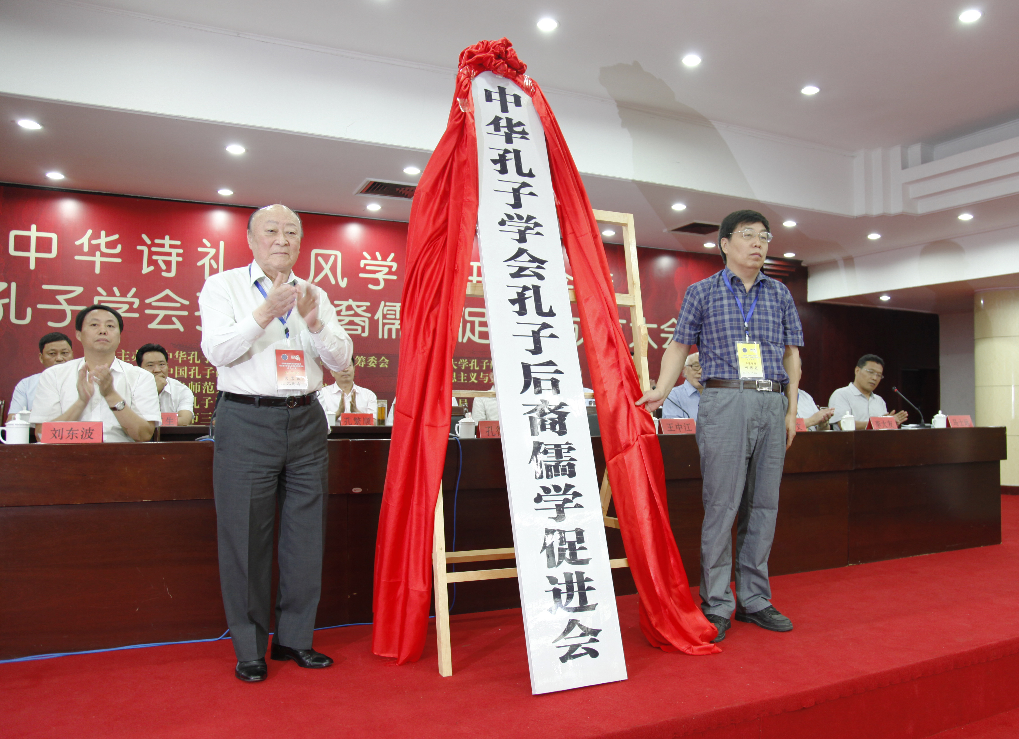 王中江会长与孔德墉会长共同为中华孔子学会孔子后裔儒学促进会揭牌。
