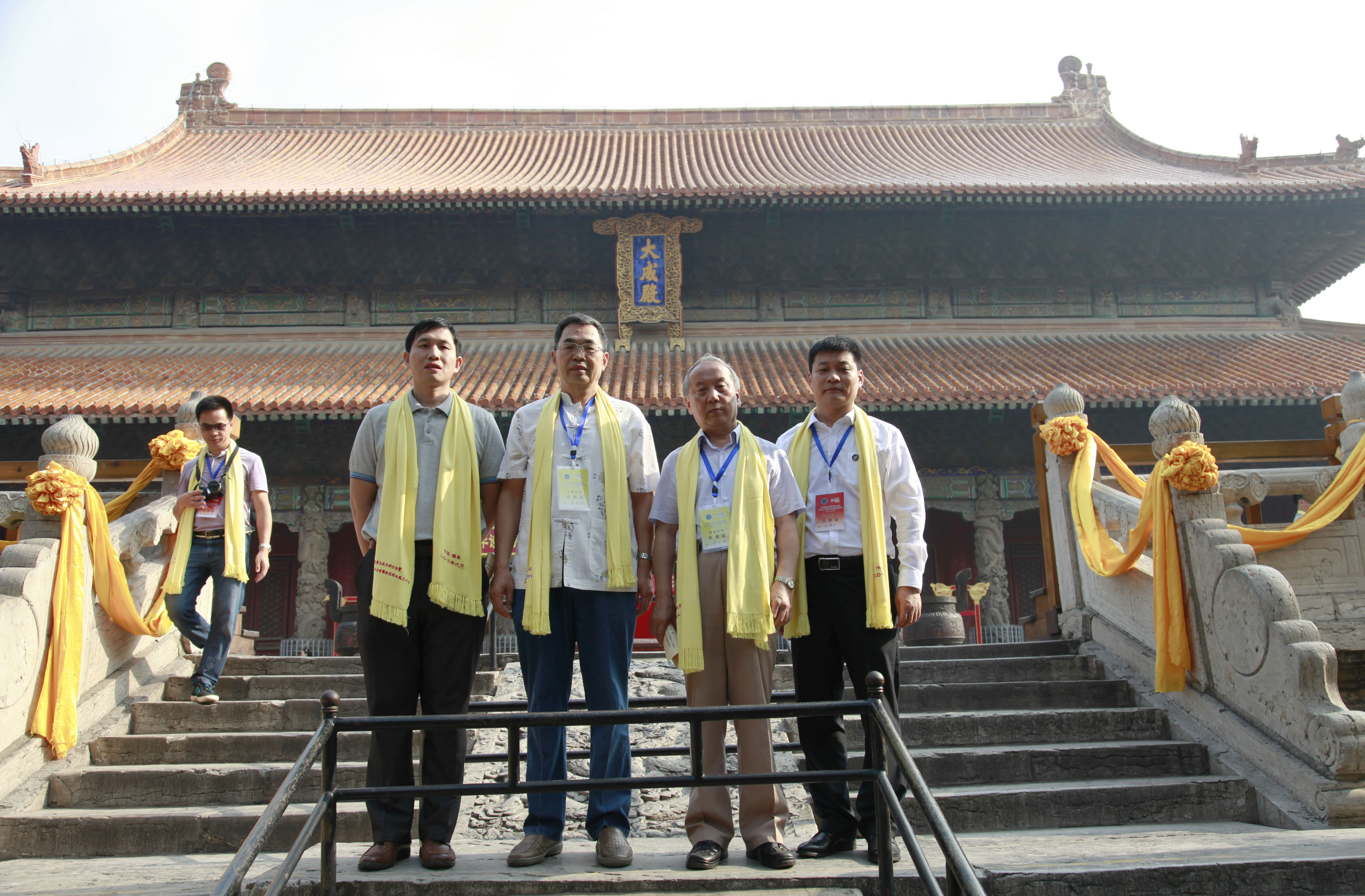 李存山、李景林、孔德立、任蜜林代表学会参会祭祀先师孔子仪式,在大成殿前合影。