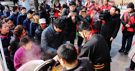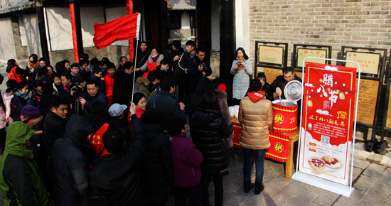 本次活动三孔景区采用衍圣公府传统技法,采用香米、莲子、桂圆、红豆、花生、荞麦、大豆、薏仁、红枣等十二种食材精心熬制,为游客准备了一碗飘香四溢腊八粥,带着对远方客人的祝福展示最纯正的山东腊八年俗!在寒冷的冬季为游客带来心头的暖意,同时也能感受中国传统文化的独特魅力。