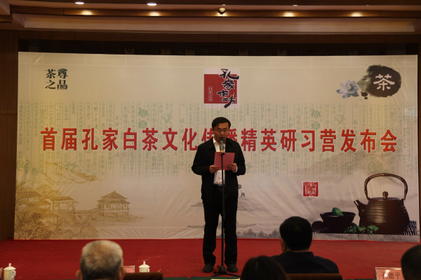 2017年10月22日-25日,首届孔家白茶文化传播精英研习营在曲阜开幕。本次活动由福建省福鼎市孔家茶业有限公司组织发起,来自全国各地的孔家白茶文化传播精英以及中华孔子学会孔子后裔儒学促进会、曲阜孔子后裔联谊会部分代表等共100余人参会。曲阜市政协主席、世界孔子后裔联谊总会副会长、中华孔子学会孔子后裔儒学促进会副会长、曲阜孔子后裔联谊会会长孔令玉,曲阜市人民政府副市长杨晓东,曲阜市文物局局长、中华孔子学会孔子后裔儒学促进会副会长、中国孔庙保护协会会长、曲阜孔子后裔联谊会常务副会长兼秘书长孔德平、曲阜市政府办公室副主任、投资促进局局长郭海涛,益宝国际集团董事长、孔子世家谱常态化续修工作协会副会长、中华孔子学会孔子后裔儒学促进会常务理事孔庆保,福鼎市孔家茶业有限公司董事长、中华孔子学会孔子后裔儒学促进会理事孔庆德等出席了结业典礼。