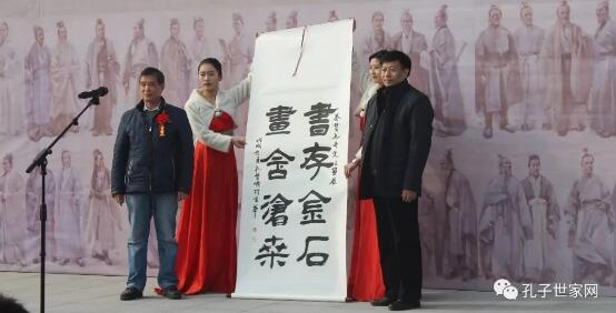 中华孔子学会孔子后裔儒学促进委员会顾问、原二炮后勤部政委孔繁顺将军赠送画展手书的“书存金石画舍沧桑”书法作品。中华孔子学会孔子后裔儒学促进委员会常务理事、民革中央委员、山东画院院长、山东省美术家协会常务副主席孔维克出席开幕式并致辞,中华孔子学会孔子后裔儒学促进委员会顾问、国家功勋教练员、乒坛名将孔令辉之父孔祥智,以及来自各地的儒促会成员、孔子后裔代表出席画展开幕式。