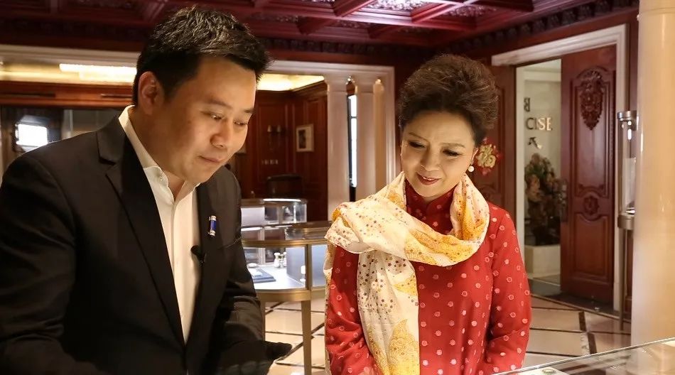 董事长孔令俊与主持人丛薇参观珐琅展厅