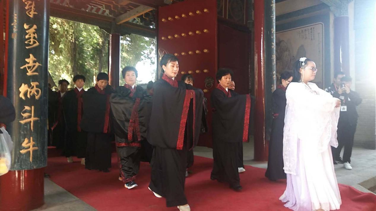 一千名中学生着汉服在万仞宫墙外集体吟诵《大学》、《中庸》