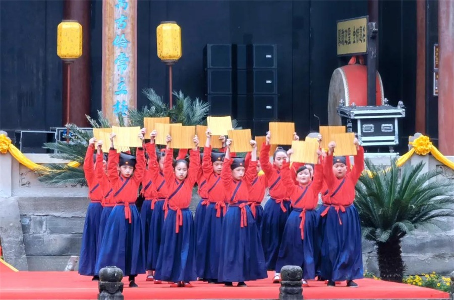 据悉,《儒在犍为·大成礼赞》为全国首部儒家文化主题文旅演出剧目。该剧以儒家文化传承为主题,分为“礼、乐、舞、赞”四个篇章,通过汉式成人礼、经典诵读、礼仪舞蹈、祭孔大典等表现形式,弘扬中华优秀传统文化,彰显名邦精神气度,传承儒家人文品格,具有浓郁地方特色并可常态化演出的特色文化旅游实景剧目。
