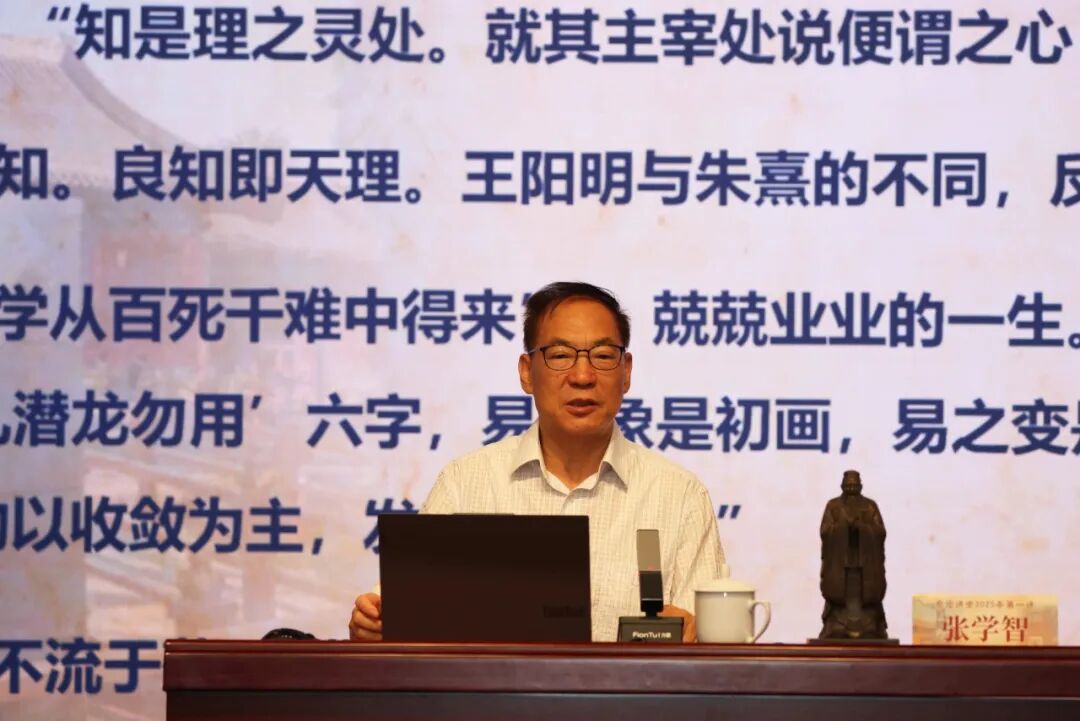 张学智教授的讲座围绕“致良知”的精义和“知行合一”的特点两个方面展开,探讨了王阳明心学的精神与智慧,认为王阳明的“致良知”以道德为统领,以知识为辅翼,有“由外到内”和“由内到外”两个方向。在“致良知”活动中,人的理性、意志、情感、直觉等各种精神活动都得到锻炼,整合成一个精神活动的总体。他强调,王阳明思想是对朱熹和陆九渊的综合,他以高度的融摄能力把知行合一融入“致良知”——“良知”是“知”,“致良知”的“致”就是“行”,“致良知”就是“知行合一”。这正是王阳明的智慧所在,也是他强调“我此良知之学从百死千难中得来,非是容易到此”这句话的深意所在。