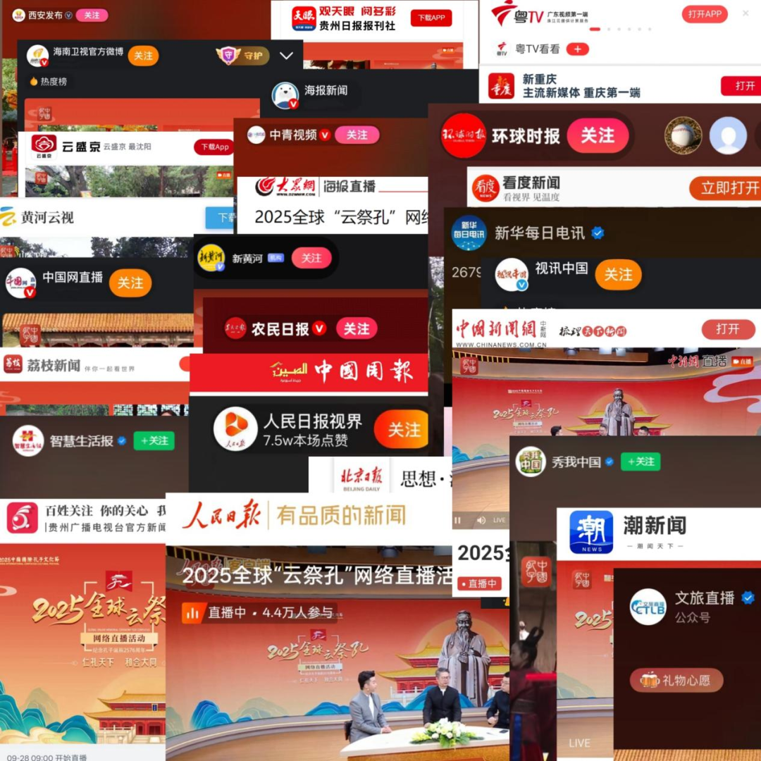 作为2025中国国际孔子文化节的重要板块,活动以“仁礼天下 和合大同”为主题,采用“主演播室 + 海内外直播点”的形式,联动曲阜孔庙、衢州孔庙、浙江榉溪孔氏家庙、北京孔庙(国子监)、天津文庙、吉林长春文庙、河北正定文庙、河北沧州文庙、江苏南京夫子庙、吉林文庙、湖南岳麓书院、江西安福孔庙、贵州贵阳孔学堂、云南建水文庙、海南崖城学宫、四川德阳文庙、四川崇宁文庙、广西南宁孔庙、广西恭城文庙、陕西韩城文庙、广东德庆学宫、甘肃临洮文庙、甘肃天水文庙、甘肃武威文庙、河南夏邑孔子还乡祠等海内外60余家孔庙、文庙、儒学机构及孔子学堂,吸引3500万观众在线参与,共同奏响了一曲跨越时空、联通四海的文化共鸣乐章。