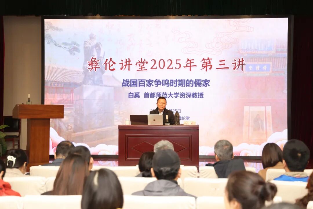 10月25日上午,由孔子研究院、孔庙和国子监博物馆联合主办,北京市东城区成贤书院承办,中国孔子基金会孔子世家专项基金支持的彝伦讲堂2025年第三讲在孔庙和国子监博物馆彝伦堂举办。首都师范大学资深教授白奚受邀担任主讲嘉宾,作题为“战国百家争鸣时期的儒家”的学术报告。