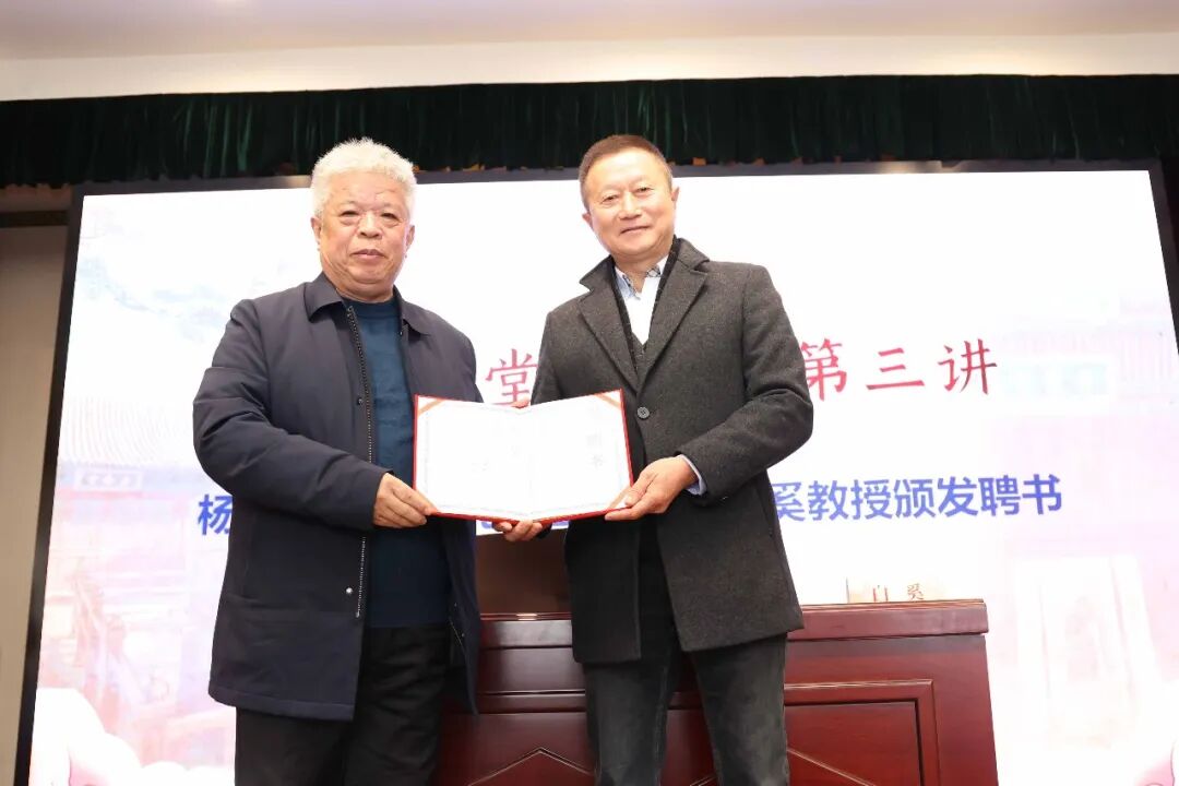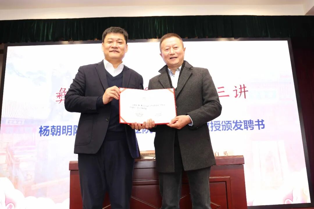成贤书院院长杨朝明向白奚教授颁发成贤书院导师聘书。