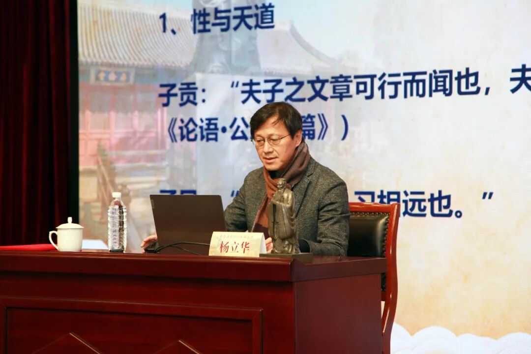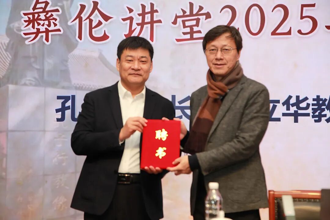 孔子研究院党委副书记、院长、研究员孔德立主持讲座,并向杨立华教授颁赠彝伦讲堂主讲教师、成贤书院导师聘书与孔子像。